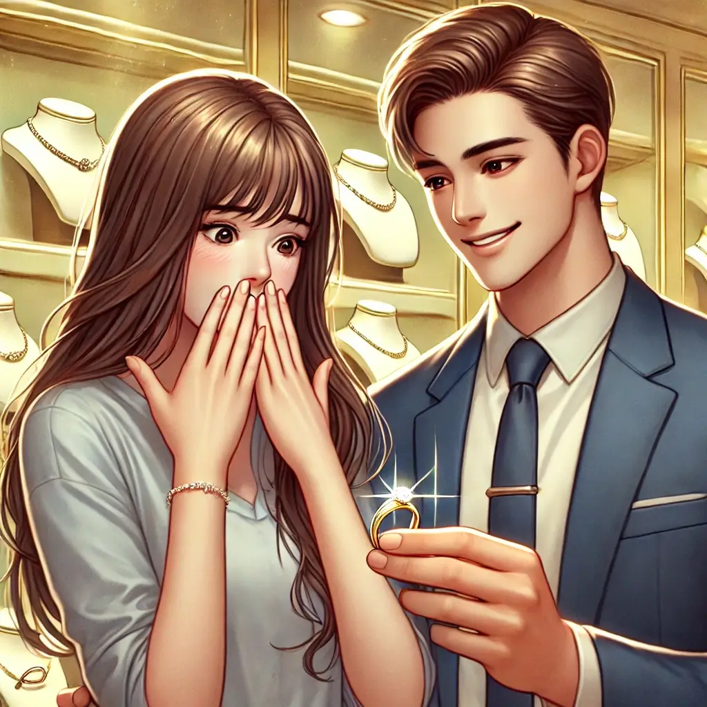 여자친구에게 다이아 반지를 주며 프로포즈를 하는 남성의 모습입니다. 모두 예쁜 사랑을 꼭 찾으실겁니다.